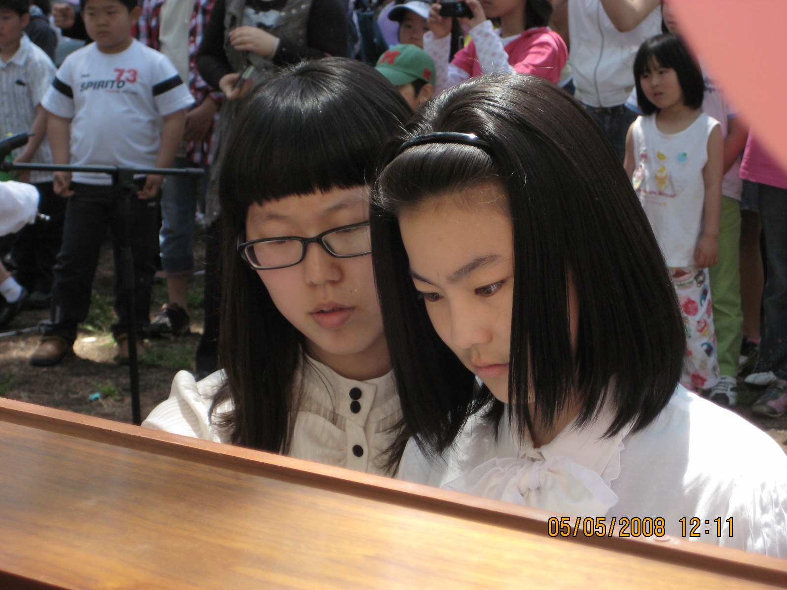 하동 송림에서 어린이날 행사 중 반주하는 소영, 보영 두 자매